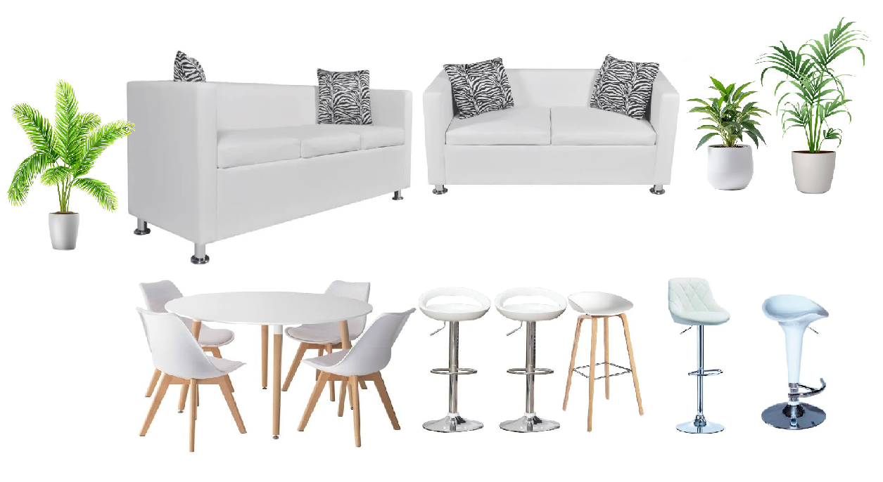 Nous proposons un large choix de mobilier design pour vos salons et événements : chaises, tables, canapés, comptoirs, éclairage, écrans TV, et plus encore.